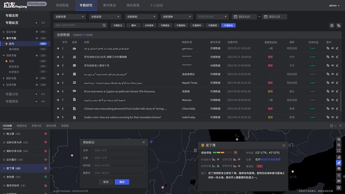 以公正、客觀、獨立的中國視角對海外安全風(fēng)險形勢進(jìn)行評估,通過聚合分析不同國別和區(qū)域安全風(fēng)險事件的要素信息,對我國駐外機(jī)構(gòu)、海外僑胞等提供實時安全風(fēng)險預(yù)警,減低安全風(fēng)險事件對我國重大工程造成的損失,提升海外人員的安全意識。