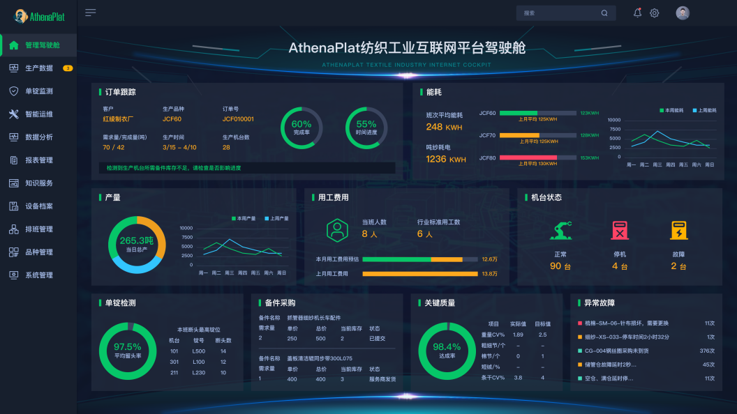 依托強大的數(shù)據(jù)處理分析能力、先進(jìn)的核心算法以及對高價值工業(yè)場景的深度研究,打造雅典娜工業(yè)互聯(lián)網(wǎng)平臺,通過在紡織服裝、能源化工、環(huán)保等多個垂直領(lǐng)域形成涵蓋企業(yè)全流程的智能制造解決方案,有效解決生產(chǎn)、設(shè)備、質(zhì)量、能源、倉儲等核心問題,為工業(yè)企業(yè)轉(zhuǎn)型發(fā)展提供可靠的系統(tǒng)平臺支撐,可大幅提升生產(chǎn)效率、降低生產(chǎn)成本、減少排放、提升安全性,賦能傳統(tǒng)產(chǎn)業(yè)優(yōu)化升級。